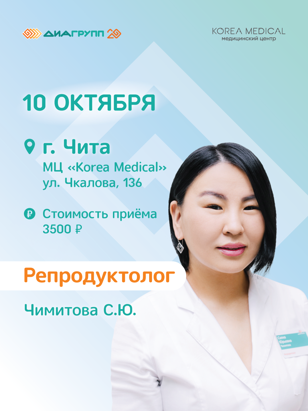 Место: г. Чита, ул. Чкалова, 136, МЦ «Корея Медикал».